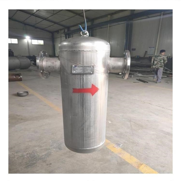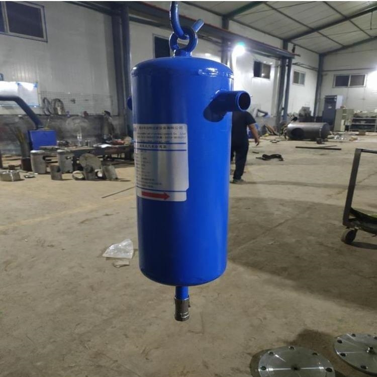 当气液混合物进入分离器后碰撞挡板,然后沿螺旋通道,以一定的速度旋转,利用离心力分离出液体,在旋流管中再通过降速、变向等进一步实现气液分离。底部的排水器可及时排放冷凝液。