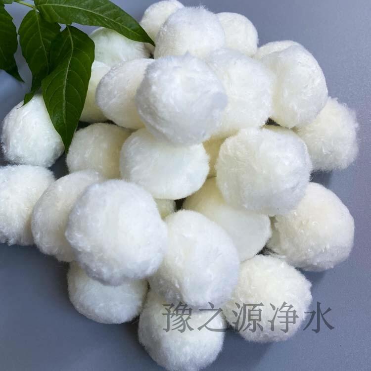 纤维球滤料是由纤维扎结而成的球形滤料,它与传统的钢性滤料相比,具有弹性效果好,不上浮水面,空隙大,工作周期长,水头损失小等优点。在过滤过程中,滤层空隙沿水流方向逐渐变小,比较符合理想滤料由上大下小的孔隙率分布,从而形成了滤速快,截污容量大,过滤效果好,可再生反复使用,不必全部更换,省时省力等优点。