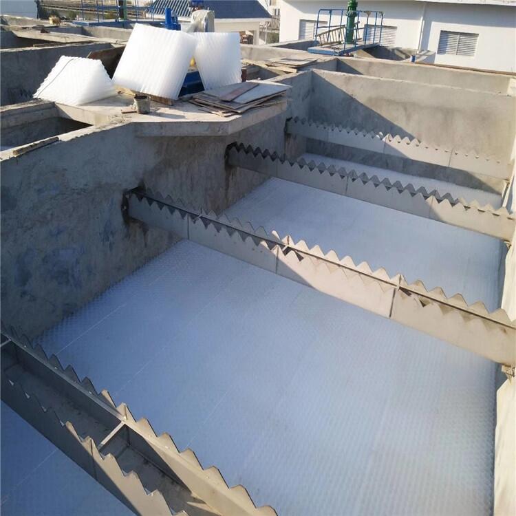 (3)经过以上施工工序,至此蜂窝斜管沉淀池填料安装已经全部完成。正常投入使用后需要根据进水中悬浮物浓度情况确定排泥周期,注意及时排泥,确保斜管沉淀池始终保持良好的运行状态及令人满意的出水水质。