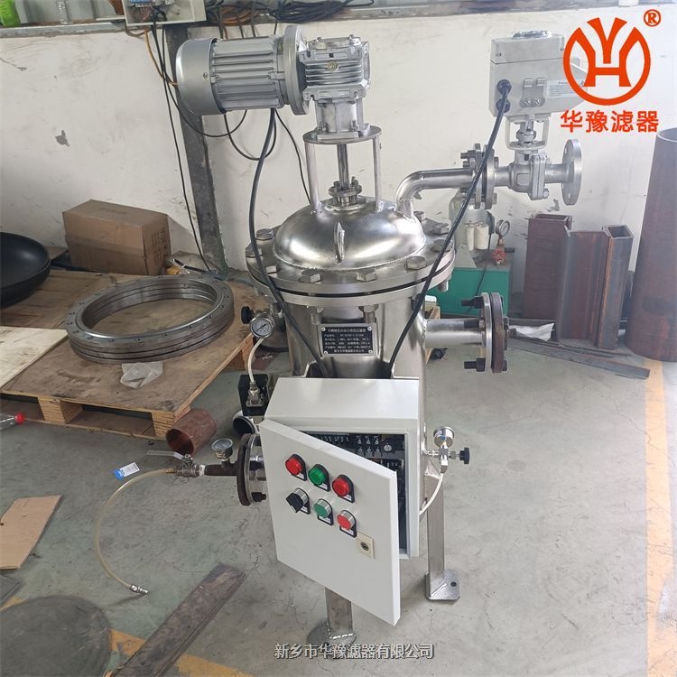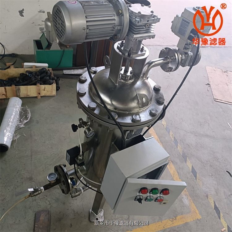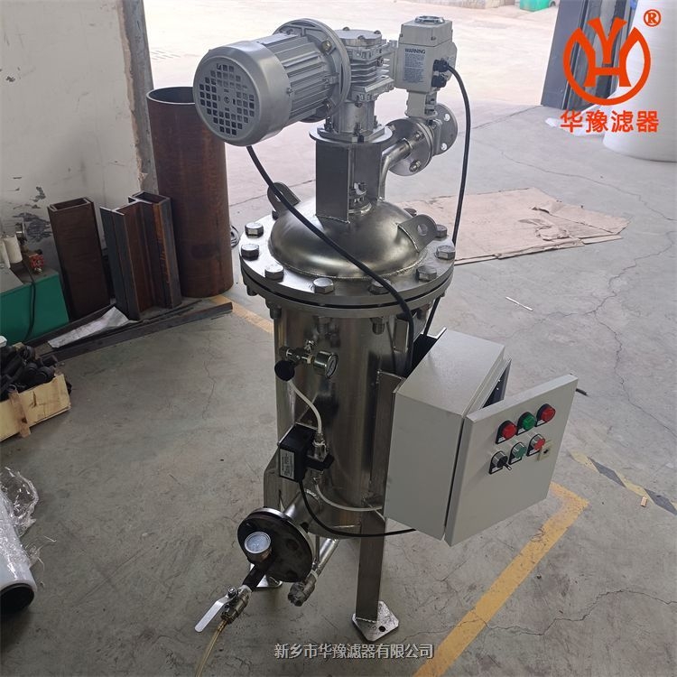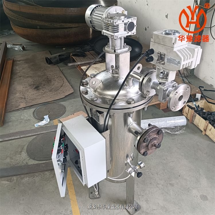 该过滤器配有PLC压差/时间/手动控制清洗装置,可根据设置内外压差,时间等自动清洗,内部为不锈钢刷,当滤网堵塞时,电动刷启东刷除滤网内壁杂质等,然后随底部排污阀排除,方便耐用,过滤流量较大,可用于机械加工、食品、医药、电厂、化工、冶金等行业;