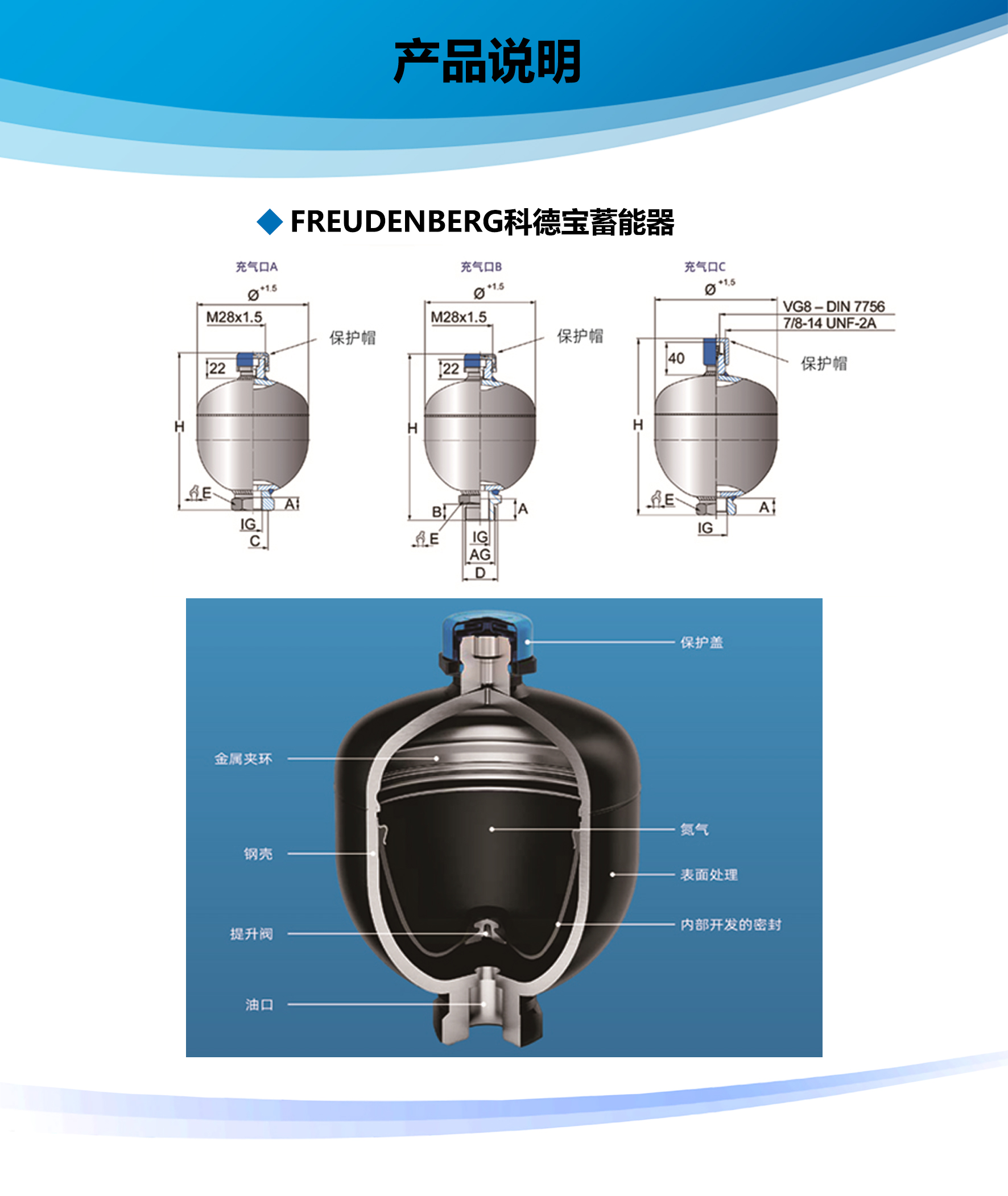 FREUDENBERG科德宝蓄能器金属膜片夹环,可再充气设计,维护简单