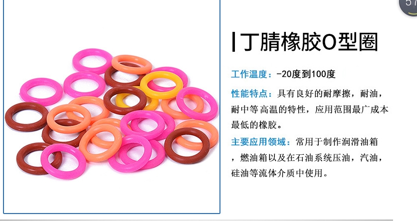 ?丁腈胶O型圈:价格便宜,耐油性,防水,耐磨性,温度-40度到 120度,不宜阳光直射