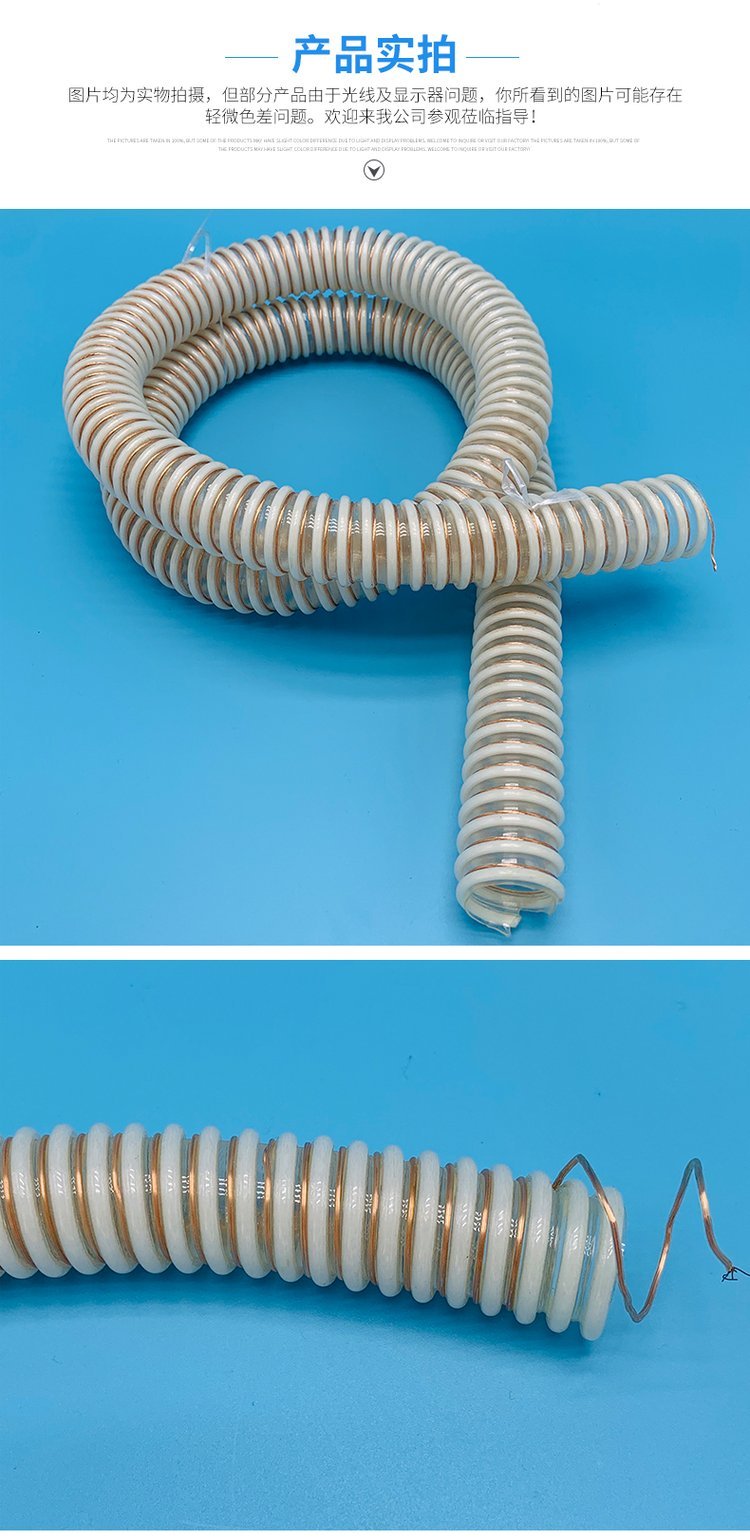 特性 | 成型中加入铜丝可排静电,耐化学性,高耐磨损,耐正负压,质地柔软,可盘卷 | ||