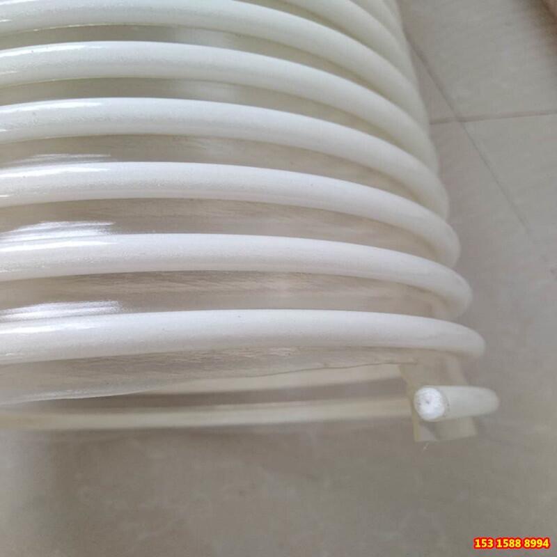 PU增强塑筋管,也叫波纹软管,螺旋软管等。采用德国进口耐磨PU材质和高强度塑料白筋加工而成,PU增强塑筋管内壁完全平滑,使得物料在软管内的流动更顺畅。PU增强塑筋管具有较强的耐磨特性,轻型,可任意弯曲,具有超高的强度及超长的使用寿命。塑筋吸尘管弯曲半径小、耐负压能力好,在真空状态下也能保持原形。