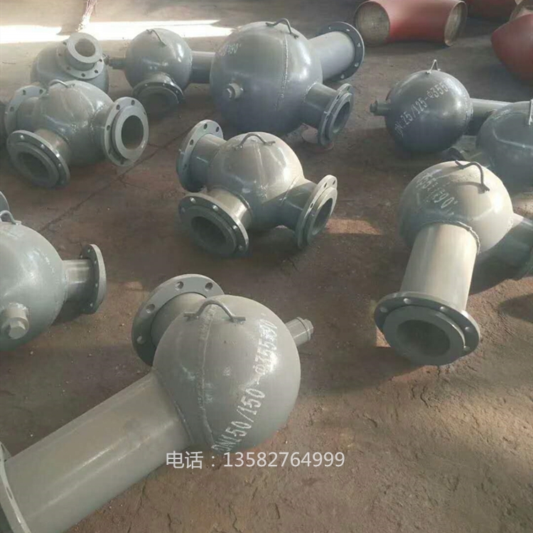 经有关检测单位对内表粗糙度及清水阻力特性测试,其内表面光滑度优于任何金属管道,清阻力系数为0.0193,比无缝管稍低。因此该管具有运行阻力小等特点,可减少运行费用。3. 耐腐蚀、防结垢 由于该钢陶瓷层为(a- AL2O3),属中性特质。因此具有耐酸碱和耐海水腐蚀,并同时具有防垢等特性。4. 耐温性能与耐热冲击性能好由于该刚玉陶瓷(a- AL2O3),为单一稳定的晶态组织。因此耐磨弯头可以-50 ~ 700℃温度范围内长期正常运行。材料线膨胀系数6-8×10-6/℃,约主为钢管的1/2左右。材料具有良好的热稳定性。 5. 工程造价低耐磨弯头重量轻,价格适宜。