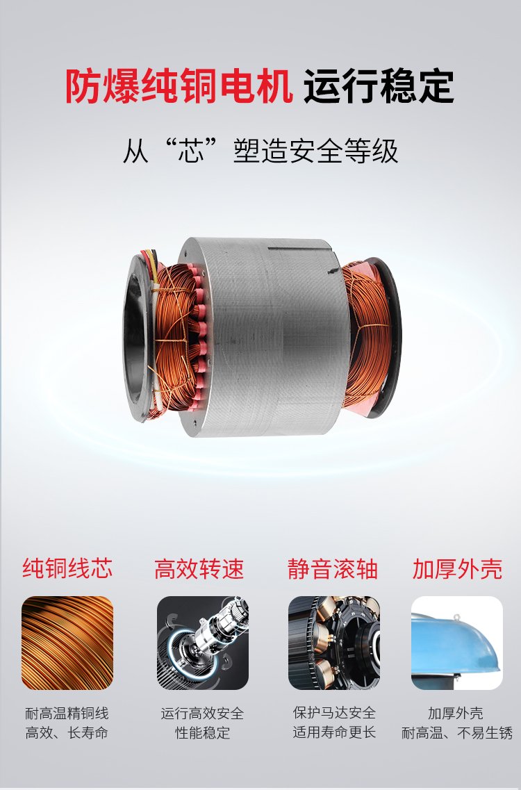 1、风机叶轮:采用优质铝合金材料,该叶轮具有风量大、噪声低、率等特点,配用双向可逆的叶片时,可在同一安装位置下实现正反双向通风、叶片角度在静态时可根据出风要求任意调节,送、排风兼用。
