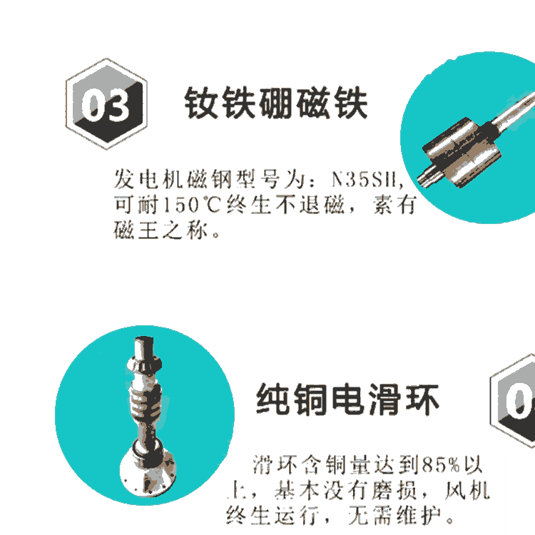 1、便携式免维护风力发电机,重量轻,功率密度高、携带方便;