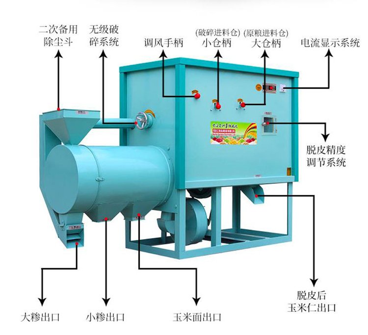 脱皮效果决定了玉米糁的质量,脱皮过程中,去皮,去胚,去根,去黑点效果如何,决定了脱皮效果;脱皮后颗粒完整度,决定了出糁多少,脱皮后颗粒大,出糁率相应高;脱皮次数,决定了机器脱皮效率,新式机器一般比老式机器脱皮次数少,脱皮效果好.