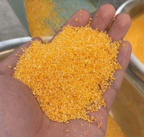 玉米原料从地面的储粮仓自动抽选进入机器,达到原料提升、脱皮、除胚、去根、去黑脐、破碎、取糁、分级、抛光等一条龙生产,减轻了劳动程度,提高了工作效率,使成品糁的质量更上一个层次。
