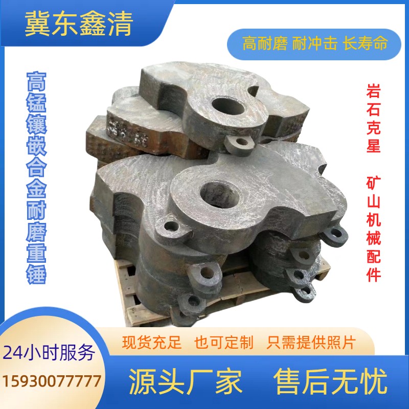 高锰钢镶嵌钨钛合金重锤矿山机械配件大甩锤镶嵌合金棒耐磨大锤头