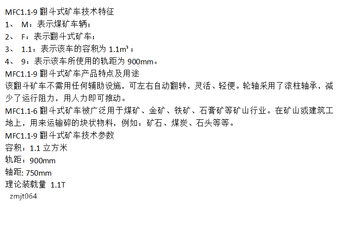 型号 | MFC1.1-9翻斗式矿车 | ||