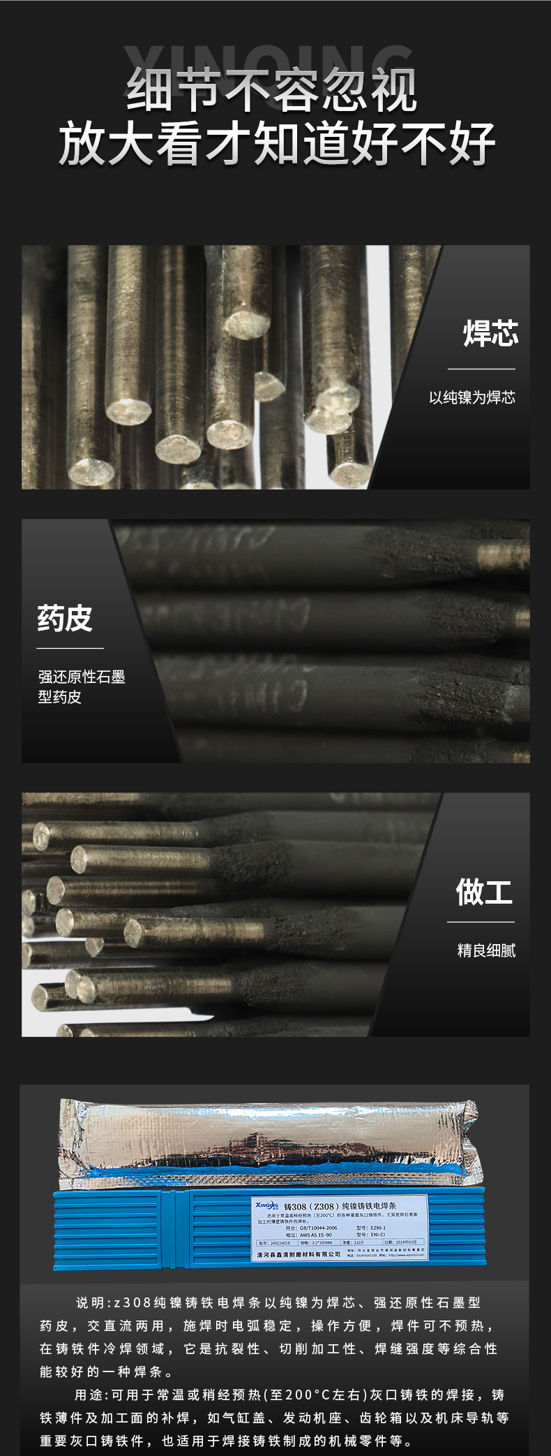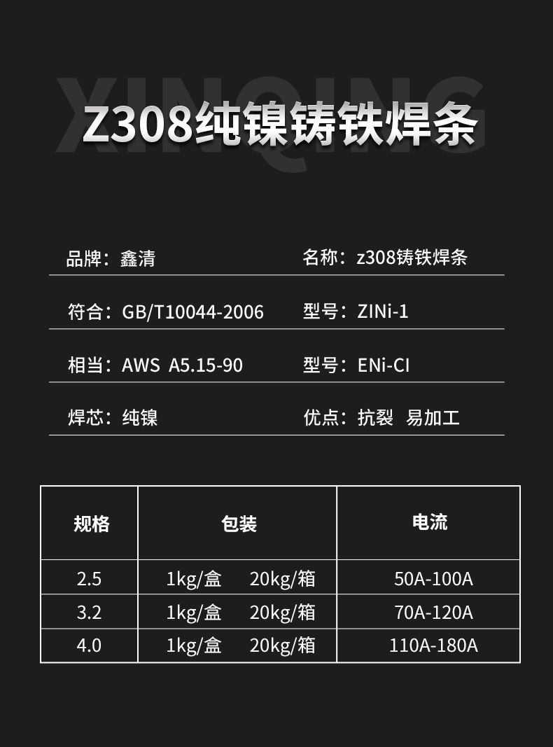 型号 | Z308/铸308/EZNi-1纯镍铸铁电焊条 | ||