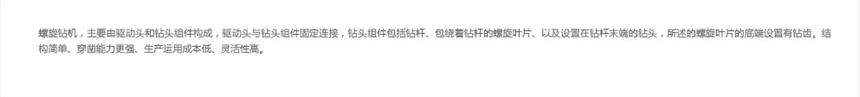 螺旋钻机-太阳能桩引孔,安装于挖掘机上使用。可在打管桩前使用螺旋钻机进行引孔,继而打桩。螺旋钻机-太阳能桩引孔主要由驱动头和钻头组件构成,驱动头与钻头组件固定连接,钻头组件包括钻杆、包绕着钻杆的螺旋叶片、以及设置在钻杆末端的钻头,所述的螺旋叶片的底端设置有钻齿。结构简单、穿凿能力更强、生产运用成本低、灵活性高。
