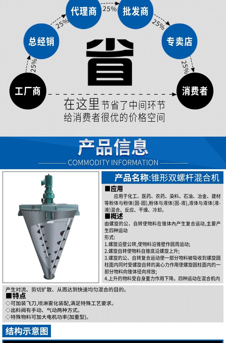 天泽牌锥形混合机 不锈钢双螺杆螺旋混合设备