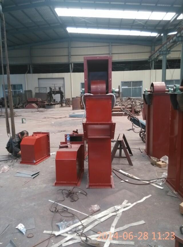 ??TD型斗式提升机由运行部分(料斗与牵引胶带)、带有传动滚筒的上部区段,带有拉紧滚筒的下部区段,中间机壳,驱动装置,逆止制动装置等组成。TD型斗式提升机适用于向上输送松散密度ρ<1.5t/m3粉状、粒状和小块状的无磨琢性和半磨琢性散状物料,如煤、砂、焦末、水泥、碎矿石等。