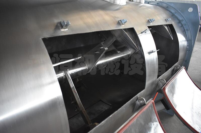 犁刀组轴:犁刀根据容积大小安排梨刀数据,安装在主轴上,在筒体内作圆周湍动流混合物料。
