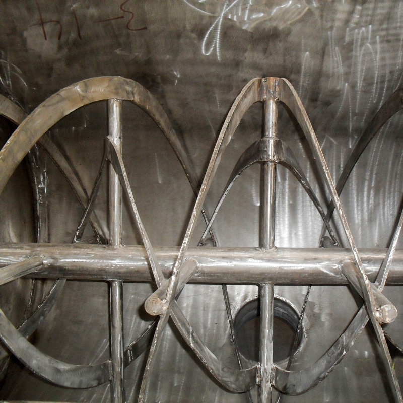 卧式螺带混料机与其他混料机相比较具有混合时间短,适应性广不破坏混合物料,易于清理清扫等优点,对物料不会压馈和磨碎,对粗料、细料的混合也有良好的适应性。卧式螺带混料机在不破坏混合物的状态下,在机体内产生横向交错对流、掺混、扩散等复合运动,使物料在短时间内达到理想混合的效果。