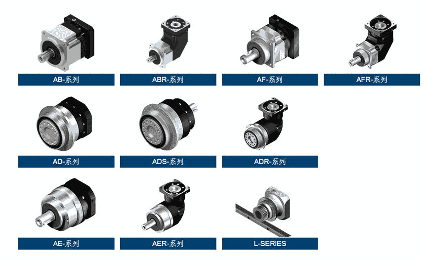 AT-L系列减速器:AT065L / AT075L / AT090L / AT110L / AT140L / AT170L / AT210L / AT240L / AT280L;AT-L1/R1系列减速器:AT065L1 / AT075L1 / AT090L1 / AT110L1 / AT140L1 / AT170L1 / AT210L1 / AT240L1 / AT280L1 / AT065R1 / AT075R1 / AT090R1 / AT110R1 / AT140R1 / AT170R1 / AT210R1 / AT240R1 / AT280R1;AT-H系列减速器AT065H / AT075H / AT090H / AT110H / AT140H / AT170H / AT210H / AT240H / AT280H;AT-C系列减速器AT065C / AT075C / AT090C / AT110C / AT140C / AT170C / AT210C / AT240C / AT280C。