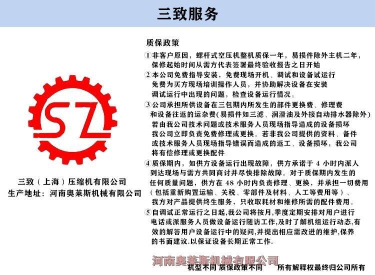 贵州省息烽县三致双击压缩螺杆空压机SZ55VF-Ⅱ陶瓷行业用