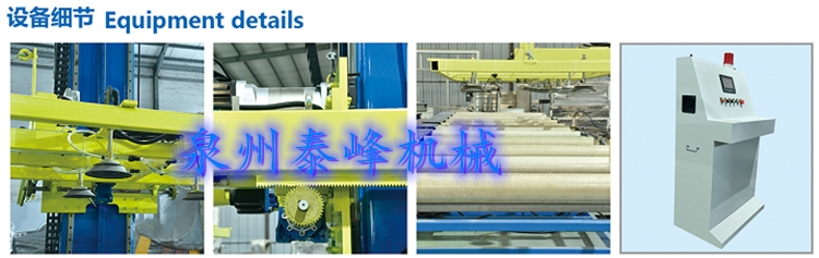 工作原理:夹芯板主机切割成品后,自动传送到垛码机设计的位置,感应到板料到位,垛码吸