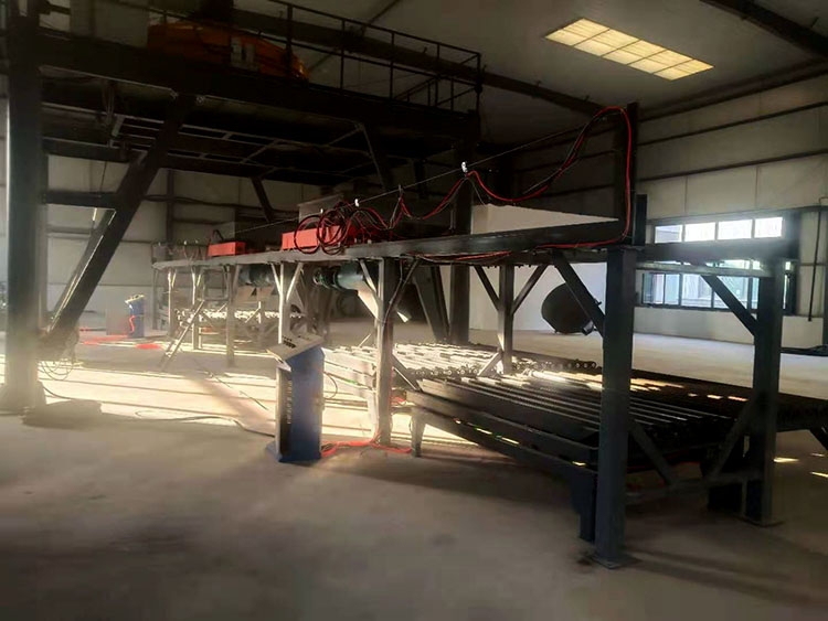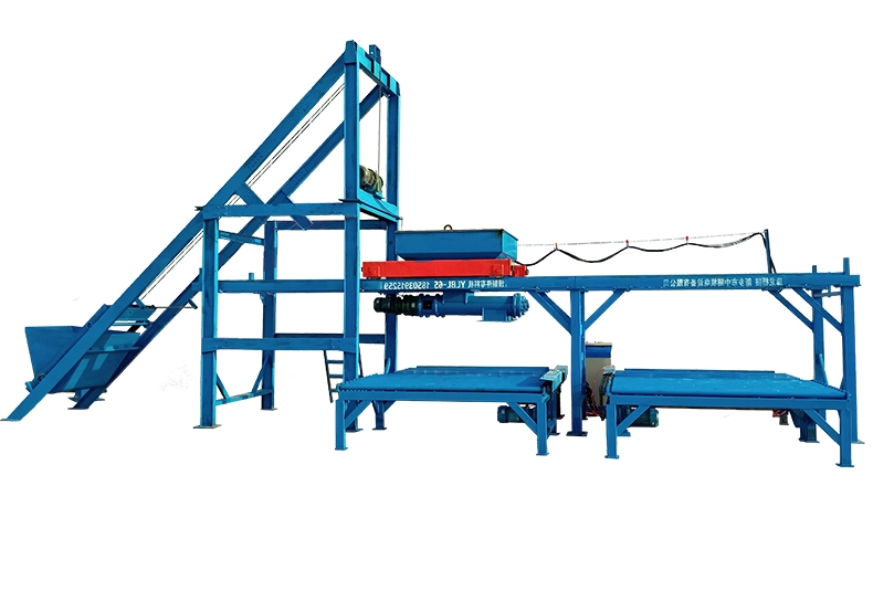 预制构件生产工艺流程 1.水泥罐车将混凝土浆料倒入爬斗提升机 2.爬斗提升机将混凝土浆料分别装入布料小车一和布料小车二 3.混凝土浆料经过布料小车的布料螺旋装入水泥预制件模具 4.装满混凝土浆料的水泥预制件模具在振动辊台上振动成型 5.成型后的水泥预制件模具动力输送辊上累积够一定数量后经叉车叉走进行养护 以上步骤可以无限循环进行 小型预制构件生产线 骨架拱柱预制生产线 小型水泥预制构件布料机。