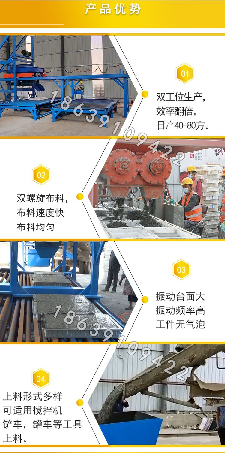 按照规划的产能目标进行设备综合参数的测算、比较及组合,终形成一套技术先进、可靠、节能、运行成本低的设备选型方案;在人员配置方面:根据产能规划及产品类别,合理测算出日产能计划,按照人均产能测算出各工种的人数概算;在产能规划方面:根据构件厂所在地预制构件市场占有率情况、发展速度以及盈亏平衡点,做好需求,在现有的厂区地域情况下合理规划出近期及远期产能,并以此为准来进行其他方面设计。小型预制构件生产线 小型预制块振捣机械 铁路护坡预制块的设备。
