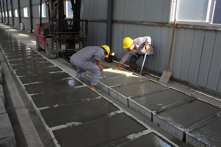 生产效率高,生产速度快,根据生产的预制构件体积不等,每天的产量也不等。预制构件的体积越大,那每天的产量就越高,大概每班能生产20-100立方。使用的是叉车转运,简单又方便,还省人工。