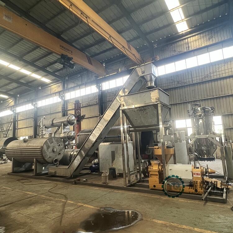 动物肉、脂溶化干炼方法多采用半圆型加热锅完成取油,锅外型多半圆型状,内部有传动搅拌,肉、脂溶化后油渣有人工用过滤网捞出,溶化完成后放油出锅,设备简单、投资少,产量小,小规模化间歇生产。保障系数低,肉下锅后多含有水份,油加热后油多飞溅,容易伤害工作人员。