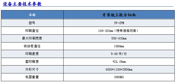 带胶牙签纸印刷上胶分切一体机设备描述