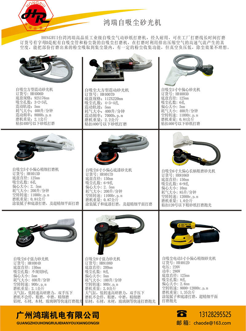 1、气动打磨机排气噪音大,打磨人员长期在大噪音环境下工作,耳内神经细胞会受到损伤,而且这种损伤是不可逆转,无法通过医治恢复,造成职业性失聪,台湾鸿瑞低耗气低噪音打磨机,打磨时耗气少,排气噪音低,能有效防止打磨噪音对人体听力损伤,符合国内和欧盟打磨噪音要求。