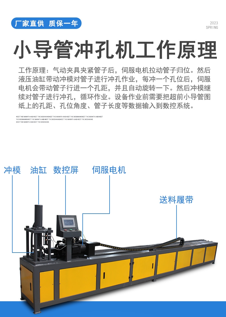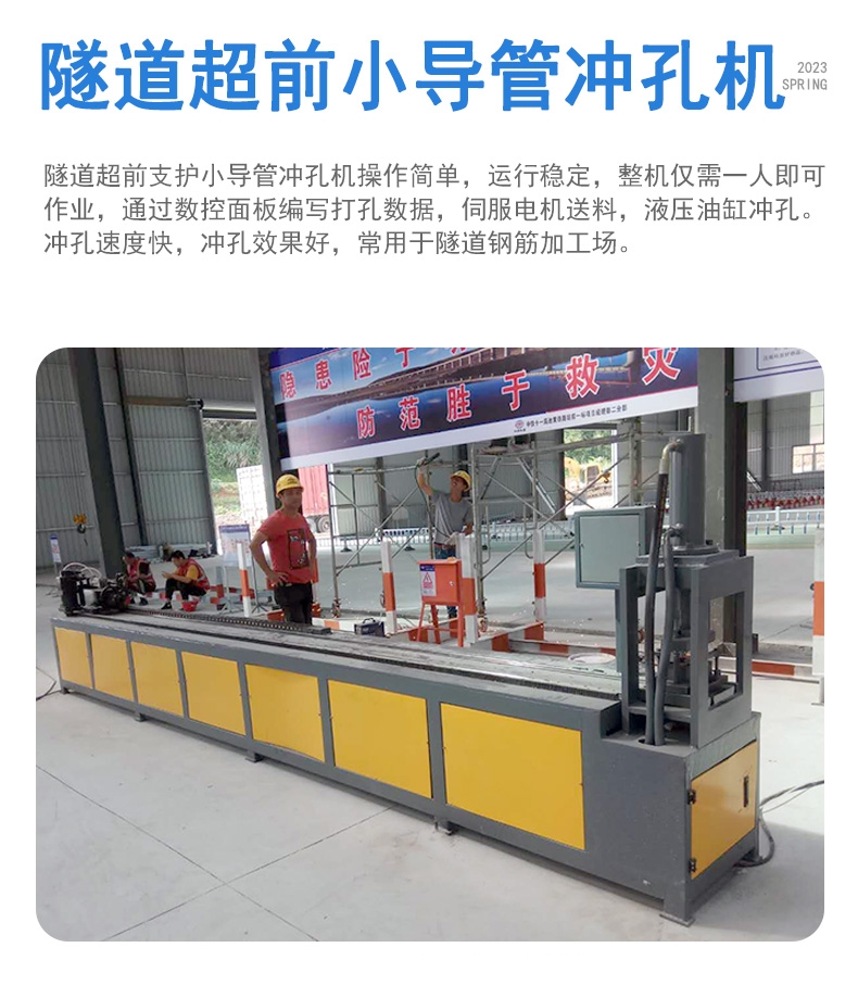 小导管的加工在钢筋加工场完成。加工完成后由质检工程师组织验收,并由试验室标识合格。 该机型为多油缸设计,夹料带有可360°功能,适用于要求在不同角度、多个面实现冲孔的工件,尤其适合消圌声圌器、空调管等冲孔加工。 液压冲孔机 小导管钻孔机 小导管冲孔机图文介绍