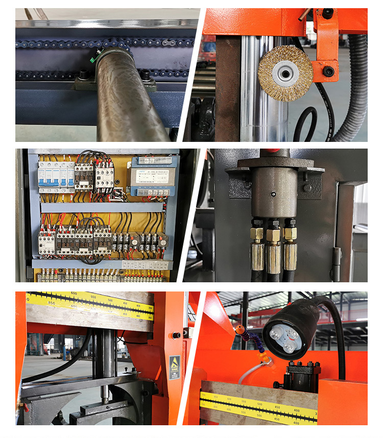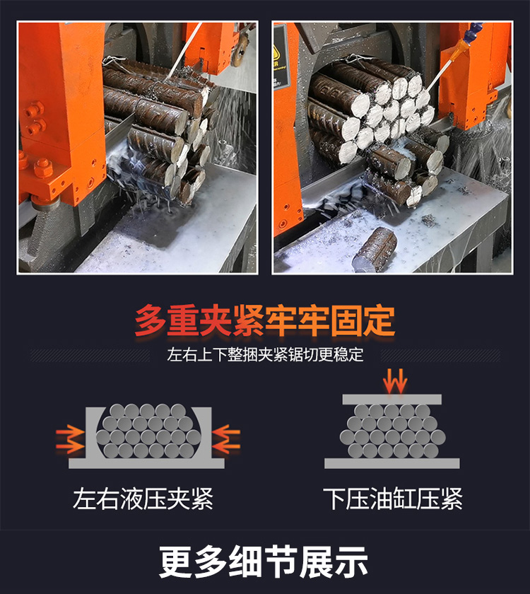 数控锯床以圆锯片、锯带或锯条等为,锯切金属圆料、方料、管料和型材等的机床。锯床的加工精度一般都不很高 ,多用于备料车间切断各种棒料、管料等型材。由轮和从动轮带动锯条作业,锯条断料方向由导轨操控架操控。经 过自转轴承将带锯条调正调直经过扫削器将锯削扫掉。由液压油缸杆支撑导轨操控架下落进锯断料,装有手动 或液压油缸夹料锁紧组织,以及液压操作阀开关等。 钢筋专用带锯床 4240型成捆钢筋锯床 全自动工字钢锯床切割机