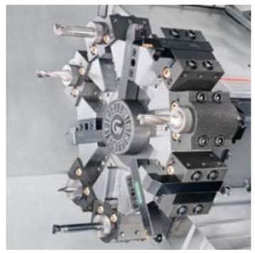 > 采用超高精度曲齿离合器精密定位刀盘,确保任何切削情形下皆有充分刀塔刚性、稳定性及耐久性。