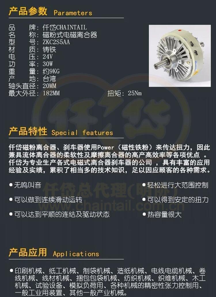 关于仟岱磁粉离合器ZKC2S5AA介绍:
