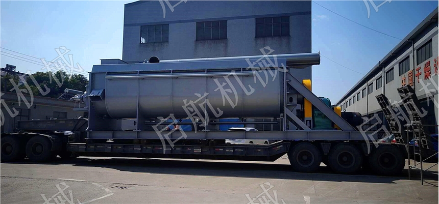在热源使用导热油的前提下,预系统采用桨叶烘干机进行原料干燥。该机主要由W形壳体和两根空心桨叶轴及传动装置组成,中空轴上排列有中空叶片,机体内壁、叶片及空心轴采用16锰钢或304不锈钢材质,保证耐热、耐腐、不开裂。