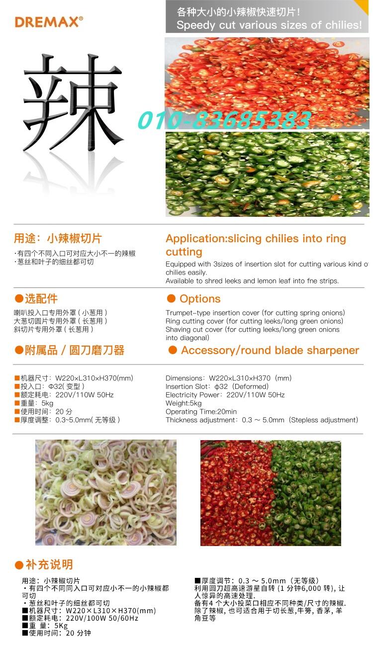 DREMAX切辣椒机DX-50T切长椒机圈柠檬叶切丝机日本切菜机