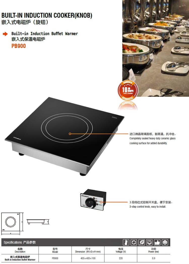 Chinducs商用电磁炉PB900华磁保温炉线控旋钮自助餐电磁加热炉嵌入式电磁灶