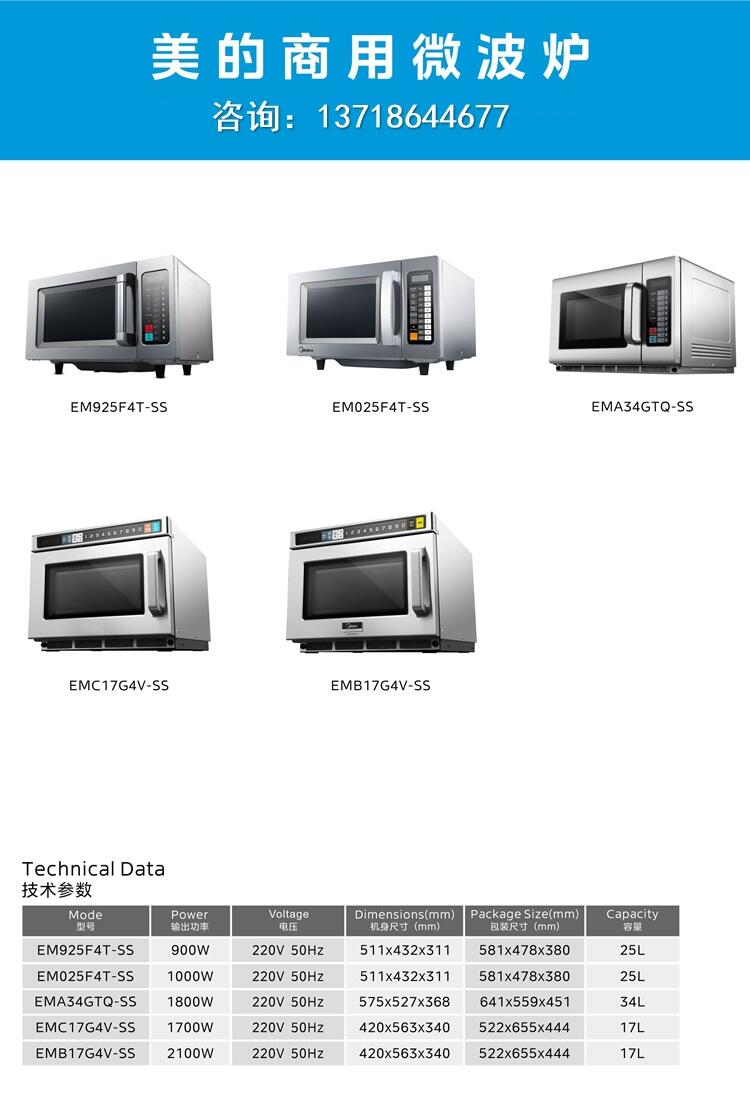 美的商用微波炉EM025F4T-SS商用大功率1000w微波炉酒店连锁餐饮专用款