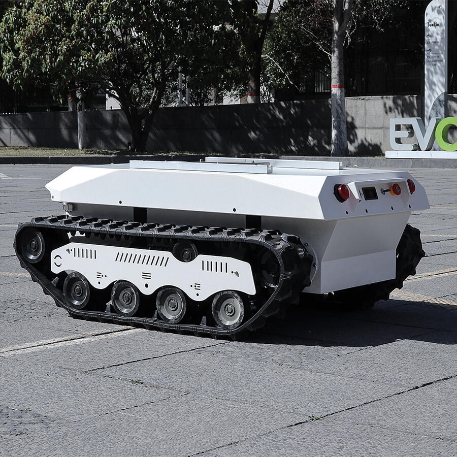 多功能自走式橡胶履带电动机器人智能遥控移动全地形底盘作为多功能平台,可搭载摄像头、水枪等多种设备,广泛应用于巡检、协同运输、市政、消防等行业. 并且这款履带机器人平台可以实现300kg的负载,支持二次开发。