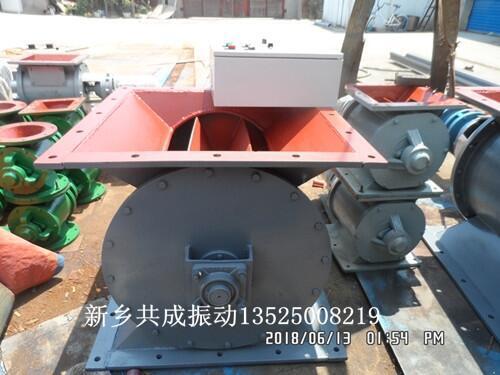 新乡旋转插板阀 电动旋转卸灰阀铸铁不锈钢关风机 石灰出灰阀 叶轮喂料器 新乡厂家共成设备公司直销YJD-10型电动卸料阀、6型200*200卸料阀、16型300*300等不同规格的电动卸料阀、卸料器、锁风阀。卸料阀适用于干燥粉状物料和颗料状物料。为环保、冶金、化工、粮食、食品等工业部门广泛应用 方口卸料器的工作原理:卸料器工作时,粉尘靠重力落入,充满上面和侧面的星形叶片空格。叶片转子由电动机通过减速机转动轴带动,叶轮转到下部粉尘靠自重落下。