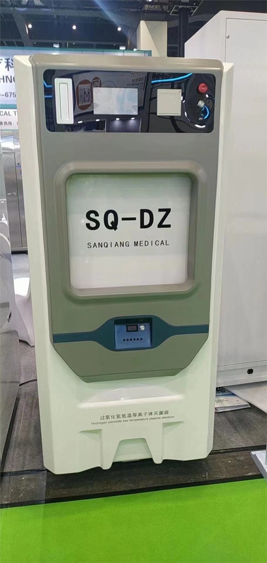 HYDROGEN PEROXIDE LOW TEMPERATURE PLASMA STERILIZER三强牌低温等离子过氧化氢灭菌器在低温、真空状态下,在灭菌室中通过高频电场作用产生等离子体,其中活性物质与微生物体内的蛋白质和核酸发生化学反应,摧毁微生物和扰乱微生物的生存功能,再以H?O?为媒质,作用于微生物细胞,进一步对微生物实施灭杀。