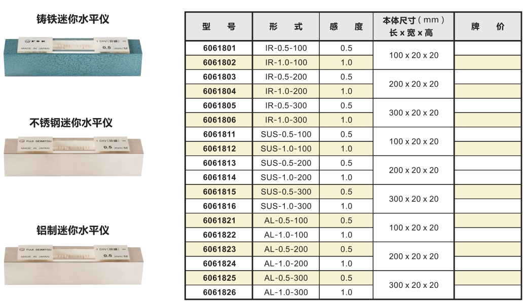 日本富士FSK 工业级高精度迷你水平仪 钳工机床水平尺 6061911