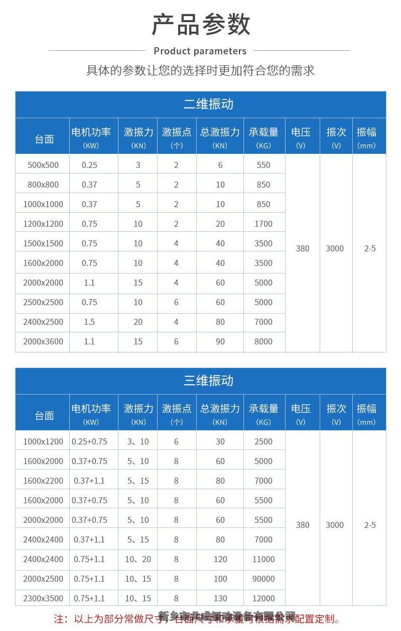 2、振动平台的振动机构主要由若干台振动电机、传动板构成,振动电机的数量一般为偶数,如:4、6、8、10等,振动电机的型号决定了三维振动平台的主要技术参数。