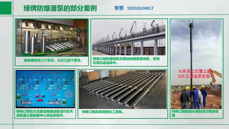 绿牌潜泵年销售逾3000万元,已销售近3万套,数百个加油站及油库等用户零故障案例。