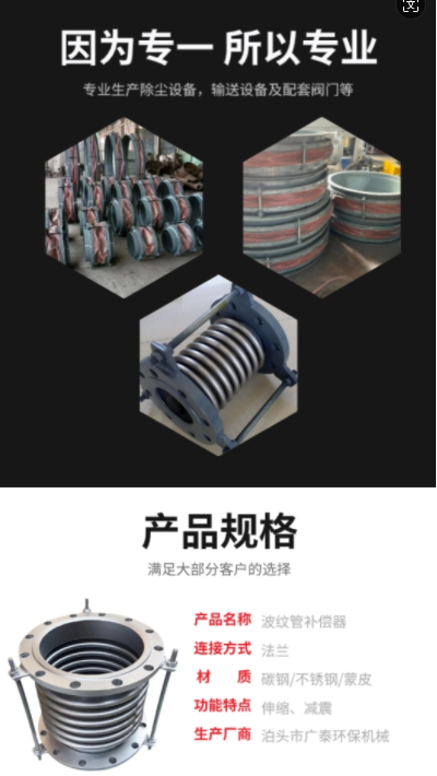 金属波纹补偿器 耐高温法兰式管道伸缩节定制 密封性好