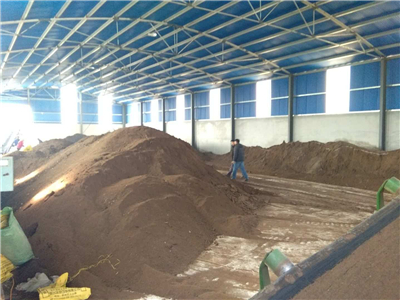 发酵过程开始后,在送风机提供氧气的条件下,好氧微生物迅速增殖,污泥温度迅速升高,2-3天进入高温期。通过自动控制系统使物料在50℃以上高温阶段维持5-7天,在此阶段内有机物被分解,水分减少,病原菌和杂草种子等有害物质被杀灭,实现污泥的无害化和稳定化。一次发酵过程持续7-9天,完成整个发酵过程高温期结束后,内部均匀翻拌装置对物料进行匀翻,使整个空间物料进一步混匀,提高产品质量。发酵过程中所产生的臭气及灰尘通过收集管道集中收集进入除臭装置内,气体从除臭装置底部进入,通过一级过滤装置绝大部分臭气份子及灰尘被吸附,除臭装置顶部配有高压喷淋装置,能均匀喷洒雾状水汽,剩余的少量小份子臭气经过滤层后与雾状水汽充分混合,使臭气充分溶于水,达到水洗、灭菌的效果,实现气体的达标排放。