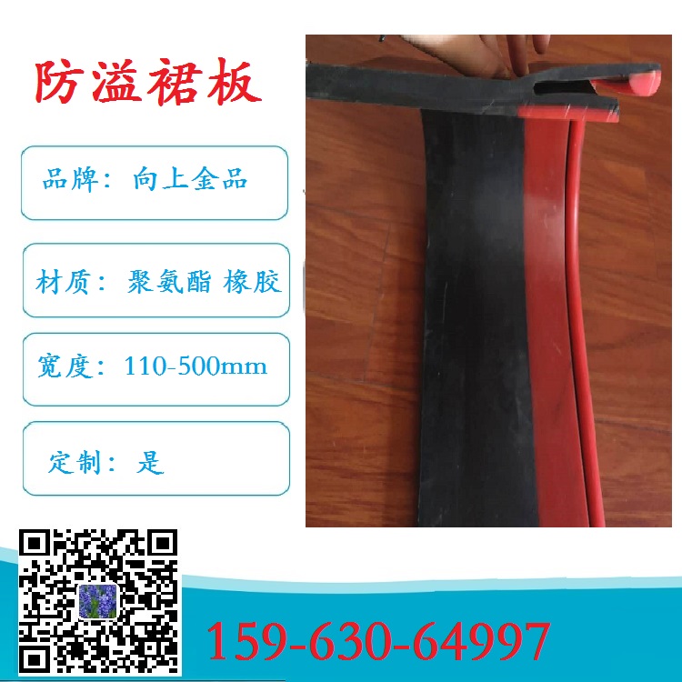 产品介绍→:防溢裙板是一种重要的密封和防护工具,主要用于输送带与导料槽之间以及缓冲床与导料槽之间的密封。它由聚氨酯和橡胶复合而成。