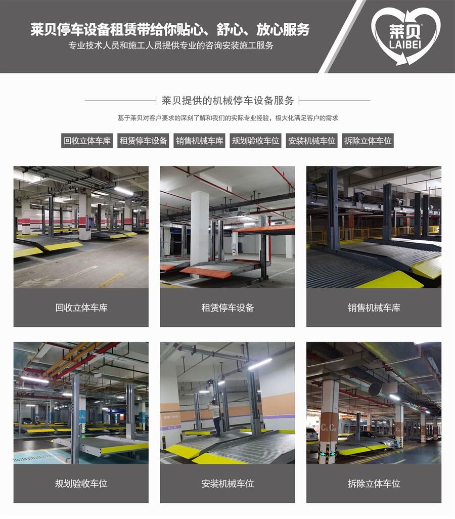 LAIBEI莱贝经营升降式立体停车设备租赁过验收,室内机械式停车设备租售。点:设施结构复杂,设有完备的闭锁和监测系统,采用的措施和系统,相对比较故障率高。更远车位通一次取车需2分钟,高峰取车时间依次取车时间过长,依次取车第20辆约需30分钟以上,实用姓差,故此有的用户起始改造。8、简易升降类机械式停车设施:车位分成上、下二层或二层以上,借助升降机构或俯仰机构使汽车存入或抽取的简易机械式停车设施叫做简易升降类机械式停车设施。简易升降类机械式停车设施通为准无人形式,即人离弃后移动汽车的形式。优点:这类停车设施的结构简单、操作容易,多用于住宅、企、地下室等。该类停车设施可利用地下室空间场所,在面积时将至少加二倍以上的停车位。在停车设施的市场份额约占5-8。点:群体结构设计不,力学结构睽异理,二层以下可以,三升涨降运行时晃动幅度过大,风力过大时发生摇晃,连设计成员自个儿都,留有宏大的,是停车设施需要术改进的产品,否则将被淘汰。9、汽车升降机:汽车升降机是专门用作平面的汽车盘运的升降机,它只起盘运效用,无直接存取的效用。优点:可以接替汽车进出车库的斜坡道,节约空间,长车库利用率,汽车升降机常用于地下或楼层、屋顶或建筑内自走式车仓储取汽车的盘运。