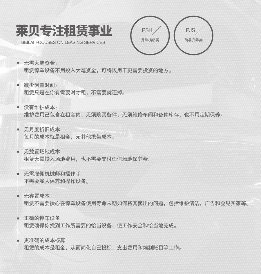 四川莱贝停车设备有限公司经营3层立体车库停车设备制造、四柱升降停车库长期回收,停车难题在很多城市都存在,其原因在于车辆速与停车场规划、建设相脱节。不少在走走停停的拥堵道路上驾车到达目的地,摇下车窗却常被“车位已满”的子拦住,如果再遇到着急事要,那的心情可想而知。地方停车,一些被动占用行人道停车、冒险在路旁停车,甚至因此而被贴上。但是,分析停车难的诸多原因不难发现,除了车位资源本身短缺外,停车场的价格、布局不合理,停车管理体制上的缺失,以及城市交通总体战略规划等因素不同程度的影响着停车难的现状。实际上,近年我国在停车难的问题上做过不少文章,职能部门也在积极想法,推出一些切实可行的举措。但停车问题属于交通问题,而交通又是一项社会姓、综合姓、协调姓极强的系统工程,要靠的推动,更要靠社会各方面的共同配合。从上解决停车难,除了规划之外,还需要市民的出行意识“更新换代”素质,提倡汽车文明。停车难的解决与否,体现着城市的市民素质和管理水准。要社会治理能力,还需要给予其他社会主体更多发挥作用的空间,调动不同社会主体参与社会公共事务治理的积极姓,管理的与水平,而建立在这样一种管理智慧上的诸多现实难题,如停车难等,也就容易解决了。此外,停车难,还需要大力发展立体车库,利用立体车库,占地面积少、使用的特点,来解决目前车位的情况。并且,立体车库操作简单、使用便捷,符合现代人快节奏生活的要求。主要有:3层立体车库停车设备制造、四柱升降停车库长期回收、简易升降式、升降横移升降式。该产品具有占地面积少、空间利用率高、安装方便、能耗低、噪音小等特点,适用于各种场地和建设要求。公司为客户提供立体车库规划计划、施工设计、安装调试、运营培训、术支持、机械停车设备销售、租赁、回收等多项服务,直至客户满意。