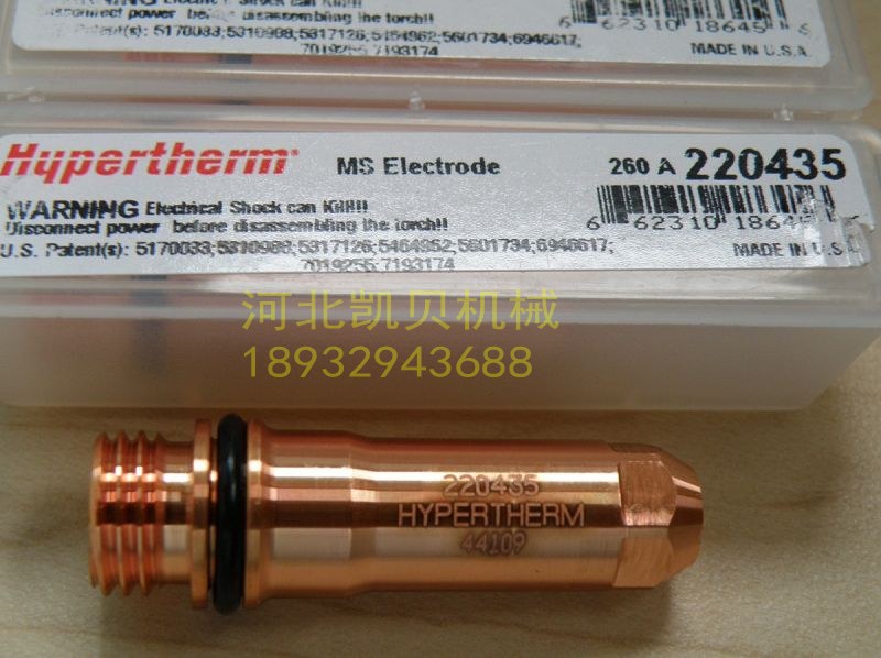 石家庄凯贝机械设备有限公司是一家集生产、销售、售后为一体的专业化生产企业,公司专业生产数控精细切割机、数控类激光切割机、数控龙门火焰切割机、数控龙门等离子切割机、数控台式等离子切割机、数控便携切割机、数控悬臂切割机,机器人切割及焊接系统,操作机、滚轮架、自动焊接机等焊接切割设备。公司凭着优质的产品,合理的价格,完善的销售系统,专业的售后服务团队,产品广泛应用于船厂、工程机械、钢结构、风机、机车、重工、港口机械、压力容器、汽车改装业务涉及特种设备、石化和食品机械等行业,远销国内外市场。 公司代理有德国凯尔贝Kjellberg、美国飞马特ThermalDyamics、美国海宝Hypertherm、美国凯博Kaliburn等离子电源及配件,价格优惠,大量现货供应。 河北石家庄凯贝机械设备有限公司拥有强大的售后服务团队,专业维修数控等离子切割机、数控火焰切割机、便携等离子切割机,同时承接切割机加装等离子、等离子切割机的更新改造、火焰切割机的更新、数控系统的更新改造。 河北石家庄凯贝机械设备有限公司愿与新老客户携手并进,共同进步,您的需求是我们的追求,您的要求是我们前进的动力,您的满意是我们的目标。欢迎广大用户及各地代理商前来洽谈,期待与您真诚的合作。海宝HPR260电极220435